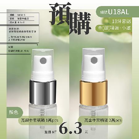 18牙的噴頭可搭配18牙的瓶罐,應用於試用品、保養品瓶、化妝水等包裝,並有小蓋子設計,不使用時蓋上,可以隔絕大粒灰塵,增加安全性。